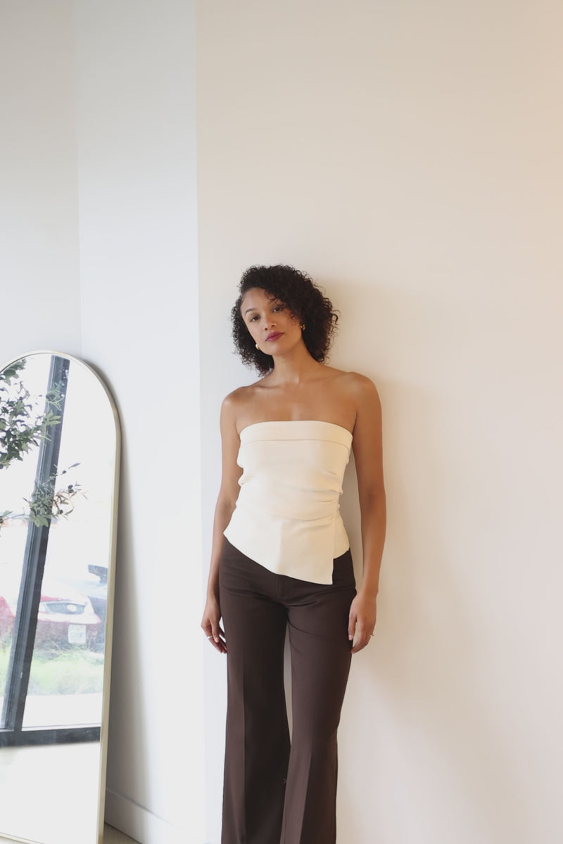 The Maxwell Fold Over Tube Top by WREN The Label is sleek, modern, and endlessly versatile making it the perfect elevated basic for your every wardrobe. Crafted from a soft, stretchy knit material, this strapless top features a fold-over neckline and flattering ruching along the sides for a close, comfortable fit that hugs in all the right places. The asymmetrical hemline adds a contemporary touch, giving this minimalist silhouette a hint of edge. Available in both ivory and black, this top transitions seamlessly from day to night. Pair it with high-waisted jeans and heels for a chic going-out look, or style it with a satin skirt or tailored trousers for an effortlessly polished ensemble. Whether you’re keeping it casual or dressing it up, this fitted tube top is a timeless staple that flatters every figure and occasion.
