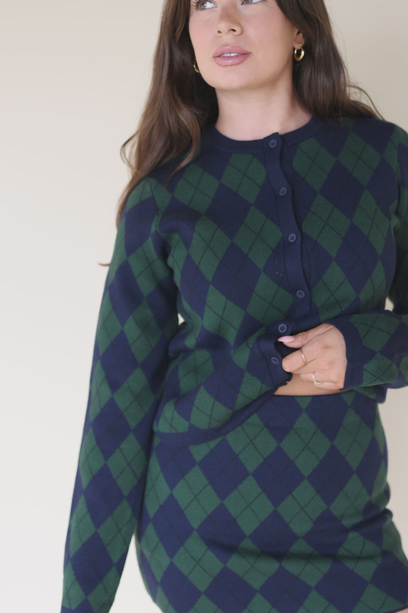 The Cher Skort by Show Me Your Mumu brings preppy charm with a playful, vintage-inspired twist. Designed in a navy and dark green argyle print, this thick stretch-knit style gives you the crisp look of a mini skirt with the comfort and confidence of built-in shorts. Pair it with the matching Cher Cardigan for a coordinated set that feels polished yet fun, or style it with a simple tee and sneakers for a more laid-back look. Perfect for weekend brunch, coffee dates, or a night out with friends, the Cher Skort is a piece that transitions effortlessly from day to evening while keeping your outfit chic and comfortable.