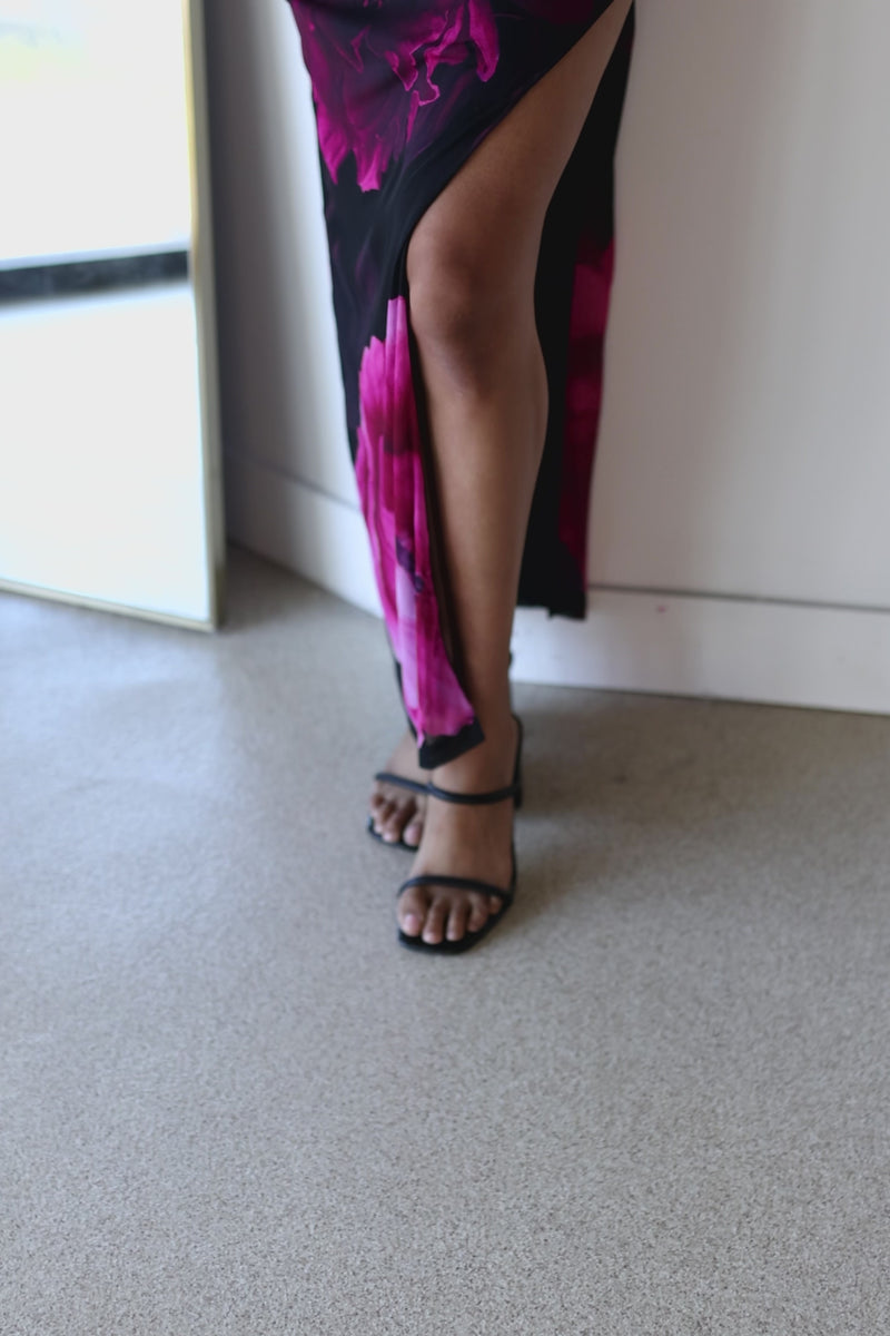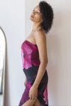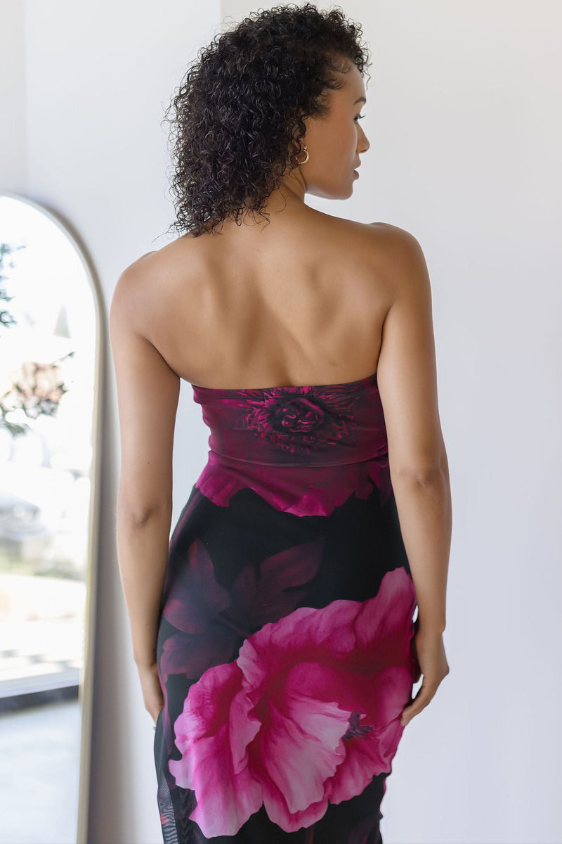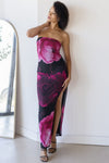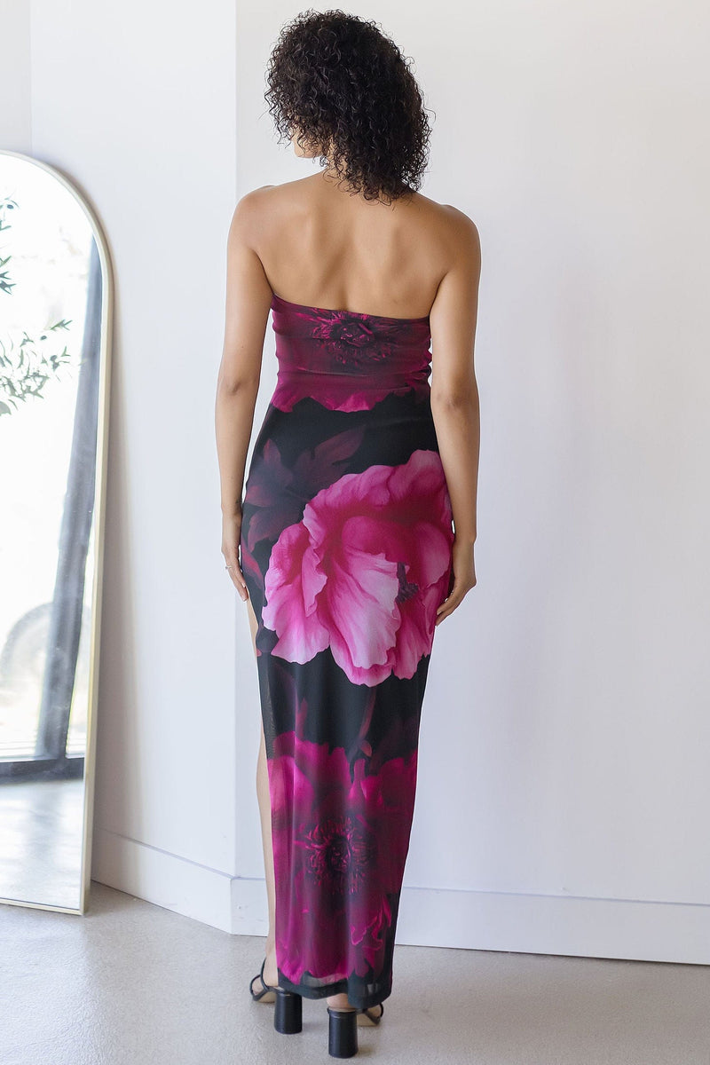 Fabric: Lightweight Mesh Material. Strapless Maxi Length Dress. Exaggerated Side Slip. Fully Lined. Fitted Throughout.