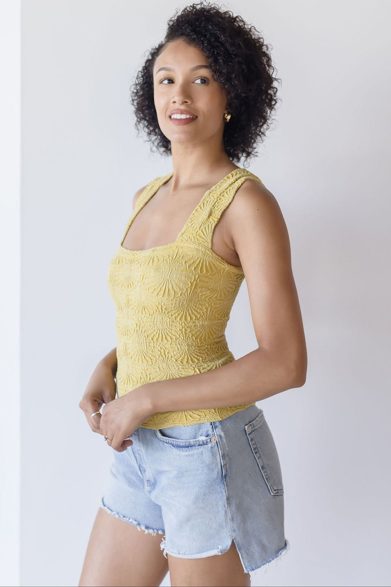This Free People classic tank is a must-have for any wardrobe. The Love Letter Cami is made with soft and stretchy textured material. It's perfect for layering, adding color, or wearing as a bra-friendly option in the summer. The square neckline and jacquard floral design add a touch of elegance, while the lettuce-edge hem adds a fun and playful detail. Easy, comfy, and versatile - the Love Letter Cami has it all!