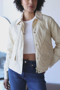 The Naven Jacket by Velvet Heart is that effortlessly cool outer layer you’ll reach for on repeat. Made from sturdy cotton canvas in a fresh cream hue, this barn style jacket features a rich contrast corduroy collar that adds a timeless, elevated touch. The fully lined interior keeps it comfortable and easy to wear, while the gold snap buttons and zipper front closure bring both function and polish. Finished with adjustable snap cuffs and angled front patch pockets with flap details, it’s equal parts practical and chic. Perfect for layering over knits, tees, or dresses, the Naven Jacket works everywhere from weekend errands and casual workdays to crisp morning walks and cozy outings.