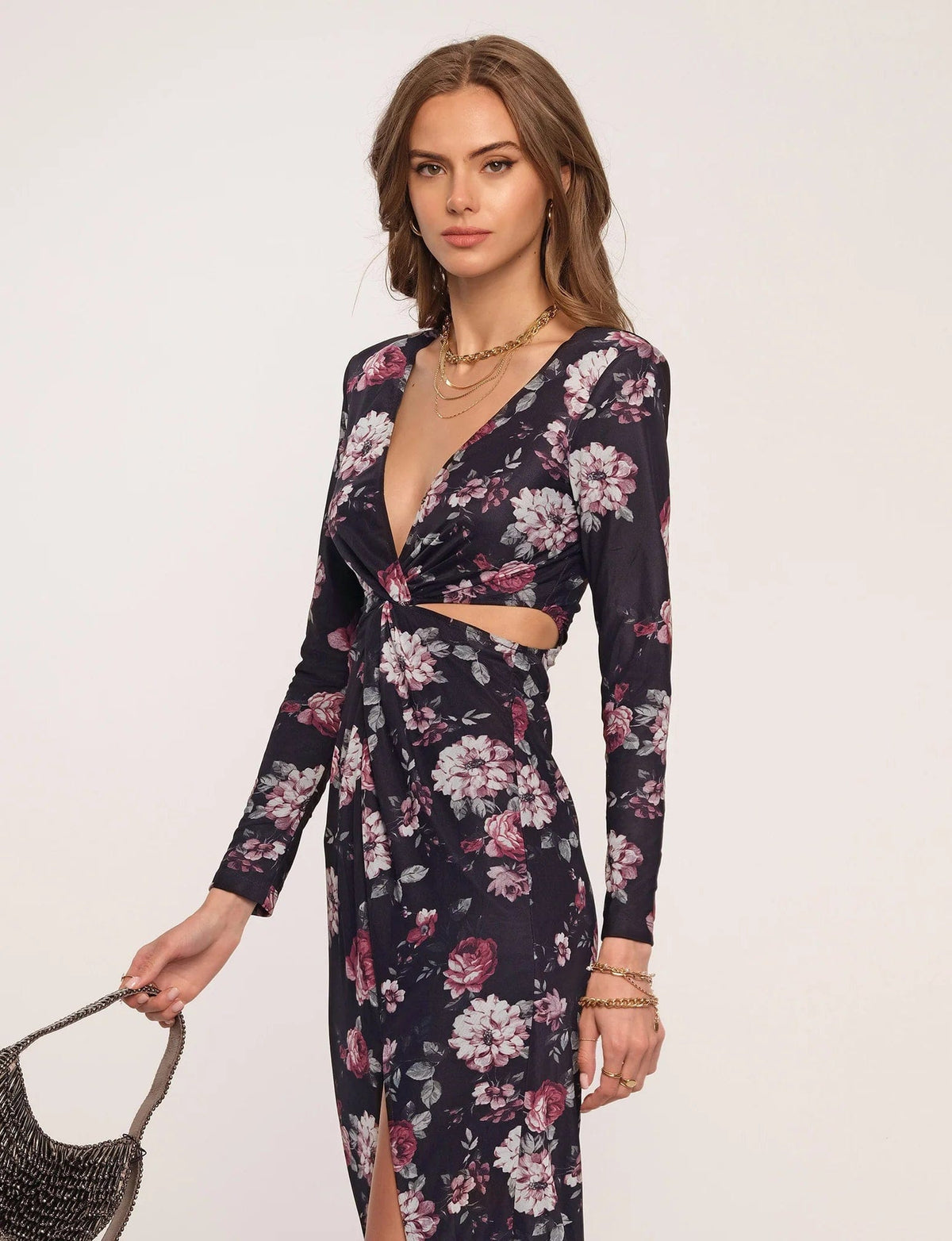 WREN The Label Art Of Bloom Blouson Bodice Midi Dress