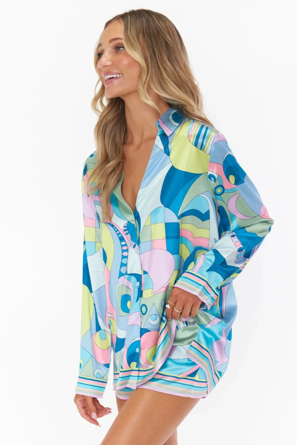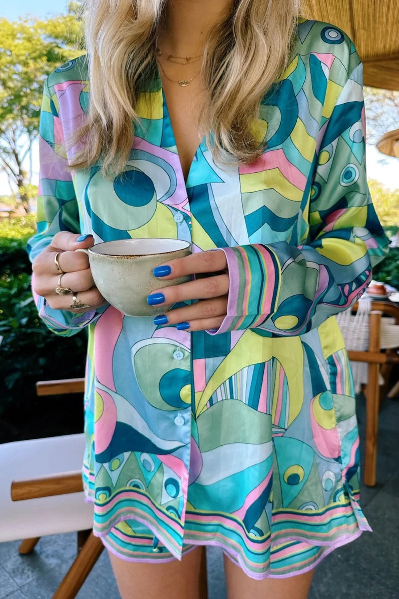 From sunrise to sunset we love these Early Riser PJ's from Show Me Your Mumu. There's something about cute pj sets that just make you feel put together and ready for the day. We love this set because the top looks great with denim, open or closed!